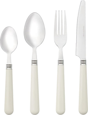 Bestekset voor 6 personen, 24-delige bestekset van roestvrij staal, bestek met kunststof handvat inclusief mes, vork, lepel voor thee of dessert, vaatwasmachinebestendig (wit)