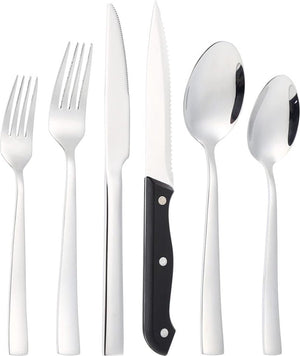 Bestekset voor 6 personen, 36-delig roestvrij staal, bestek incl. messen, vork, lepel, steakmessen, spiegelgepolijst, vaatwasmachinebestendig