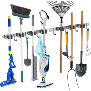 7 sleuven en 7 haken: 2 stuks apparaathouders, 3 sleuven, 4 haken + 4 sleuven en 3 haken, zodat je in totaal 7 sleuven en 7 haken ontvangt. Bespaar ruimte met zijn compacte formaat en sterke organisatorische vaardigheden. Sterk en stabiel: de aan de muur gemonteerde dweilhouder bestaat uit roestvrij staal SUS304 en milieuvriendelijke siliconen, dan kunststof. Dankzij het weerbestendige ontwerp kan deze roestvrijstalen houder buiten of in de schutting voor je tuin werken! Antislip design: het driepunts siliconen ontwerp zorgt voor een goede wrijving, de grootte automatisch gebaseerd op verschillende diktes van de handgrepen om wegglijden van objecten te voorkomen, kan tot 13,6 kg in totaal dragen. Perfecte wasmachine: organiseer je bezem, dweil, harken, gereedschap en meer. Perfect voor de keuken, kast, tuin, garage, schuur, kantoor. Maakt je huis schoner en netter. Eenvoudig te installeren: er zijn 2 mogelijkheden om deze bezemhouder te installeren, wij raden de installatie van schroeven aan voor zware ophangingen of buiten. Als je een zelfklevende installatie voor gladde oppervlakken kiest, houd er dan rekening mee dat het maximale Ophanggewicht 13,6 kg
