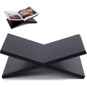 boekenstandaard | Acaciahouten kruisstandaard, displaystandaard, boekenhouder, leesboekenhouder, tijdschriftenstandaard, kookboekenhouder, muziekstandaard, stabiele open boekendisplay (zwart)