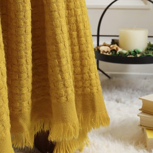 Boerderij boho gebreide deken voor bank sofa stoel bed woondecoratie, zacht warm gezellig licht gewicht voor lente zomer herfst (50''X60'' mosterd / geel)