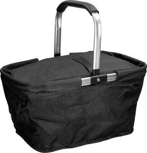 Boodschappenmand, koelmand met deksel, thermische koeltas, picknickmand met koelvak, isolatietas met aluminium handvat, 30 liter volume, zwart