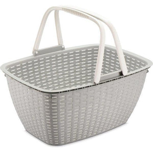 Boodschappenmand met handvat, lichte draagmand van kunststof, voor het vervoer van boodschappen, stevige plastic mand met gevlochten look (01 stuks, lichtgrijs)