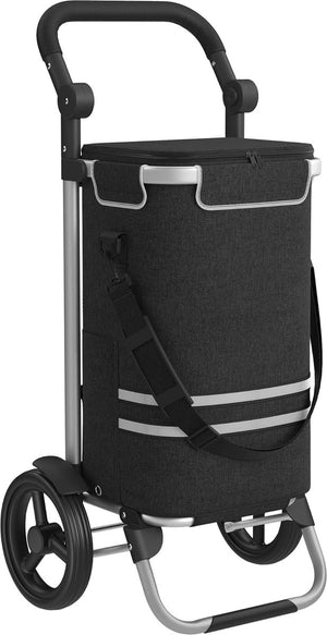 Boodschappentrolley, trolley, winkelwagen met koelvak, groot, 35 liter, inklapbaar, boodschappentas met wieltjes, afneembare tas, zwart