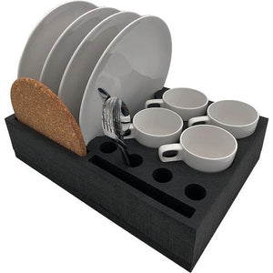 Bordenhouder en bekerhouder voor camper, caravan, boot met ruimte voor 4 borden, 4 kopjes en bestek