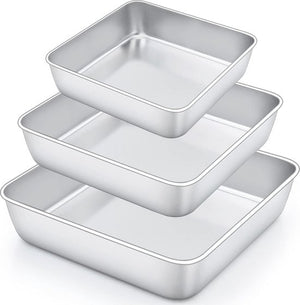 Brownie Vierkante taartvorm, 100% roestvrij staal, vierkante bakvorm, ovenschaal, 3-delige set, ideaal voor cake, brownie, lasagne, gezond en niet giftig, vaatwasmachinebestendig