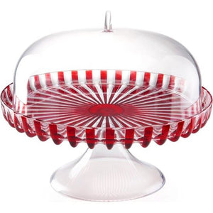 Cake Plate with Base and Cover - Red, Diameter 31 x Height 27 cm