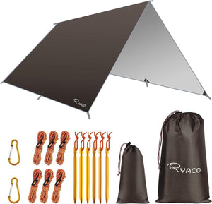 Camping tentzeil, 3 m x 3 m, waterdicht, voor hangmat, met 6 haringen en 6 touwen, anti-uv-regen, zonbescherming, licht, compact grondzeil, picknickdeken, hammock, voor buiten, camping, herbruikbaar