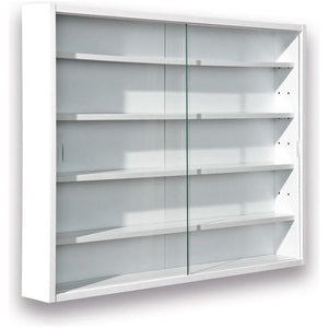 Uitvoering: Hangende vitrine met vier interne planken. In deze vitrine vindt u voldoende ruimte om uw favoriete items zoals modelauto's, figuren of sieraden stijlvol te presenteren. De twee glazen schuifdeuren passen zich perfect aan de structuur van de vitrine aan. Functionaliteit: Glazen schuifdeuren bieden gemakkelijke toegang tot verzamelobjecten zonder veel ruimte voor de vitrine in beslag te nemen. Flexibiliteit: Verstelbare planken bieden flexibiliteit bij het rangschikken en tentoonstellen van verzamelobjecten van verschillende afmetingen. Afmetingen in cm: 9,5 x 60 x 80. Materiaal: spaanplaat, MDF en veiligheidsglas. Levering zonder decoratie. Montage-instructies: Bij de levering zijn afbeeldingen van montage-instructies inbegrepen. Onderhouds- en reinigingsinstructies: Het product is waterafstotend en gemakkelijk te onderhouden. Het kan eenvoudig worden afgeveegd met een vochtige doek en vervolgens worden afgeveegd met een droge doek.