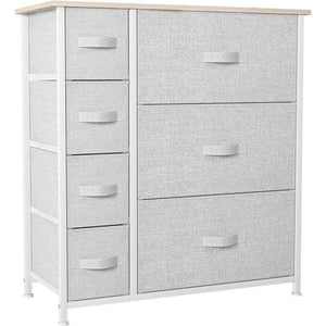 Commode met laden, kast met 7 laden van stof, opbergkast, moderne stijl voor slaapkamer, woonkamer, kinderkamer, hal, lichtgrijs
