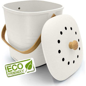 Compostemmer, 6 liter, voor dagelijks biologisch afval in de keuken, geurdicht en afwasbaar, duurzame biologische vuilnisemmer met deksel en filter in eenvoudig design, biologische afvalemmer voor keuken (6 l, wit)