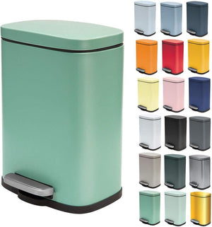 UNIEK ONTWERP: Of het nu in de badkamer is als cosmetica-emmer of in de keuken voor kleiner afval - deze afvalbak past dankzij het eenvoudige maar elegante roestvrijstalen ontwerp perfect in elke kamer. Hij heeft een inhoud van ca. 5 liter. Het kunststof inzetstuk met praktische draaggreep maakt het legen en schoonmaken van de emmer eenvoudig. KWALITEIT: Handige opening. Je hoeft hier niet te bukken. Het voetpedaal van de cosmetica-afvalbak is extra groot, zodat deze gemakkelijk te openen is. Er zit extra plastic op de vloer, waardoor er geen krassen op de tegels komen. MET BINNENBAK: De afvalbak past modern in jouw badkamer. Geen wiebelen of rammelen dankzij de hoogwaardige afwerking. Het deksel sluit zacht en stil. ANTI VINGERAFDRUK: De prullenbak is voorzien van een anti-vingerafdruk coating. Zo voorkom je vervelende afdrukken. Je maakt de prullenbak eenvoudig schoon met een vochtige doek. De binnenemmer kan eenvoudig worden verwijderd met behulp van het handvat. De perfecte decoratie voor uw badkamer. MET AUTOMATISCH DALEN: Afmetingen (HxBxD): 30 x 21,4 x 17,6 cm, kleur: groen, door het voetpedaal open je de prullenbak moeiteloos zonder te hoeven bukken. Het zachtsluitende mechanisme voorkomt luid dichtslaan.