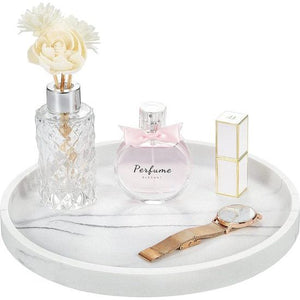 Cosmetisch dienblad, ronde harsdienblad, keramische sieradendienblad, opbergbak, make-up-organizer, sieraden, opbergdienblad, voor badkamer, toilettank, wastafel, zandwit