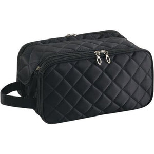 Cosmetische tas met grote capaciteit voor dames, 3 lagen met borstelcompartiment, reismake-uptas, grote make-uptas voor dames en meisjes, zwart