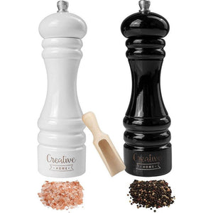 IDEAL VOOR ZOUT, PEPER EN KRUIDEN - met een set van 2 Creative Home molens kun je granen malen - je kunt zout, peper, gedroogde kruiden malen en je eigen mix van smaken en aroma's creëren. Alle granen - zoals peperkorrels - kunnen gemakkelijk in de molen worden geplaatst met een mini houten lepel.