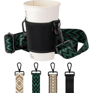 Cupholder . Tas voor koffiebekers en fles om te hangen. Ideaal voor bekers en drinkflessen van alle soorten (zwart, patroon groen)