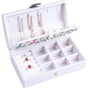 dames, 2 lagen, PU opbergkoffer voor ringen, oorbellen, armbanden, halskettingen, reizen, sieraden, organizer, geschenkdoos voor meisjes en vrouwen (wit)