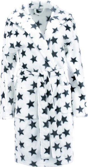 Damesbadjas met sterren, verkrijgbaar in de maten: S/M - L/XL en in de kleuren: antraciet/wit