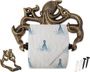 Decoratieve gietijzeren toiletpapierrolhouder Octopus decor voor badkamer Octopus nautische badkameraccessoires inclusief schroeven en pluggen - goud en zwart