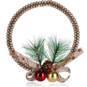 • LEVERINGSOMVANG: 1x decoratieve hangkrans // Afmetingen: ca. 14,5 cm (Ø) // Materiaal: metaal, kunststof, hout // Kleur: goudkleurig, bruin, rood, groen
