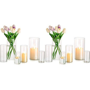 Afmetingen: 5,5 x 10 cm, 6,5 x 15 cm, 8,5 x 20 cm, verpakking van 4 cilindervazen voor middenstukken: met hun eenvoudige en strakke ontwerp zijn deze vazen van helder glas de meest effectieve decoratie voor bijna elke gelegenheid, perfect geschikt voor het plaatsen van kaarsen en bloemen. U creëert een prachtig tafereel dat werkelijk onvergetelijk zal zijn. Kwalitatief hoogwaardige glazen vaas voor bloemen: deze tafelvaas is gemaakt van hittebestendig borosilicaatglas en heeft een krasbestendig oppervlak, hoge transparantie en kan gebruikt worden als glazen kaarsenhouder. Creëer uw eigen themafeest: populair bij het rangschikken van dennenappels, kunstrozen in water, boeketten, pampasgras, pioenrozen. Werkt prachtig met pilaren, votief-, zweef- en LED-ka