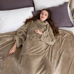 Aangenaam en zacht materiaal: de stof van de deken is mooi behaaglijk en de naden zijn netjes afgewerkt, voelen zeer aangenaam aan. De woondeken bestaat uit zacht flanel, bij het instappen in de deken heb je je meteen goed en warm gevoeld. Bovendien kan de omkeerbare deken aan beide zijden goed worden gedragen en opgeborgen in de grote tas mobiele telefoon, afstandsbediening, een e-reader, of zakdoeken enz. Unieke knuffeldeken met mouwen: de mouwen zijn breed gesneden, lang en daardoor zeer comfortabel. Of het nu op de bank, in bed, voor de tv of op het bureau is, een draagbare deken met praktische mouwen is precies wat je zoekt, zonder dat je schouders valt of je armen bevriezen. Zo zit je in de herfst en droge winter gezellig op het terras of het balkon, als het weer half mooi is. Perfect als cadeau: als leuk cadeau voor Valentijnsdag, verjaardag, Moederdag, oogstcadeau, kerstcadeau, nieuwjaarscadeau enz. Bestel voor je geliefde, familie, partner en vrienden. Als je het draagt, zal je huisdier zich ook graag in je armen oprollen. Passende afmetingen en beschikbare kleuren – twee afmetingen inbegrepen: 180 × 150 en 200 × 170 cm. De fleecedeken is geschikt voor de meeste volwassenen en tieners. Het is lang genoeg om de voeten probleemloos volledig te bedekken. Deze mouwdeken biedt ook vele kleurvarianten: antraciet, bruin, donkerblauw, kurkuma, grijs, donkergrijs, rood, paars en wijnrood. De kleur van de deken ziet er zeer modern uit en moet qua kleur bij bijna elke bank passen.