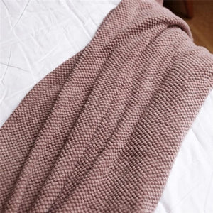 Deken Zacht gebreide deken, knuffeldeken met kwastjes, bankdeken, slaapdeken, donkerroze ananasweefsel, 130 x 200 cm
