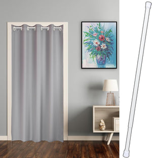 Deurgordijn met telescoopstang, eenvoudige montage zonder boren (grijs, 200 x 150 cm (HxB) en 70 tot 120 cm telescoopstang)