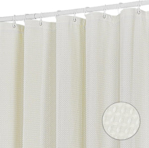 Hoge kwaliteit: gemaakt van polyester stof; zeer zacht om aan te raken, drapeert goed, elegante uitstraling gemakkelijk te updaten badkamer decor thema. Waterdicht: water druppelt af en droogt snel, zodat uw badkamer droog en schoon blijft. Wafel ontwerp: de delicate wafelstructuur voegt elegantie en luxe toe aan uw badkamer en brengt de stijl van een luxe hotel in uw badkamer; bovendien is het dikker en zwaarder dan een normaal douchegordijn en voelt het comfortabel aan. Eenvoudige installatie: het douchegordijn wordt geleverd met 12 robuuste haken die een snelle en eenvoudige installatie mogelijk maken. Machinewasbaar: ons badkamergordijn kan in de wasmachine worden gereinigd op een temperatuur van 30 graden Celsius en is gemakkelijk te drogen zonder te vervagen; Het 183 x 183 cm grote douchegordijn past in de meeste standaard badkuipen en douches.
