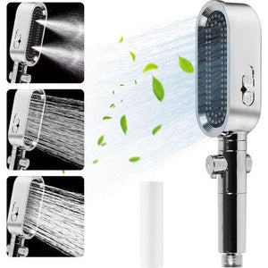 Douchekop, waterbesparend, handdouche, douche met filter (een reservepatroon), 3 straalsoorten, douchekop met drukverhoging, stopfunctie en instelbare hoeveelheid water, rechthoekige douchekop