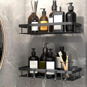 Doucheplank met 4 haken Badkamerplank zonder boren Zelfklevende roestvrijstalen muurmanden Opbergrek voor badkamer 2 stuks