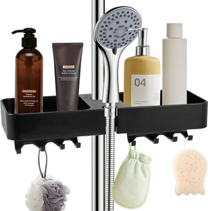 Ruimtebesparend: doucherek om op te hangen zwart zinvol gebruik van de ruimte rond de douchestang, de meeste badkameraccessoires kunnen erop worden geplaatst, zoals handdoeken, kopjes, douchegel, shampoo, kammen, zeep, conditioners, scheerapparaten, enz., de douchestang-opbergrek helpt je ruimte te besparen. EENVOUDIGE INSTALLATIE: Douchestang-opbergrek vereist geen boren, geen gereedschap en geen gaten in de muur. Doucherek om op te hangen past op alle standaard douchestangen (1,8-2,5 cm), de clips hoeven niet te worden vervangen, druk gewoon de schroevendraaier in om te vergrendelen en je kunt het doucherek op elke gewenste hoogte instellen. Uniek opslagdesign: doucheplank zonder boren telescopisch heeft een uniek mesh-ontwerp van de bodemplaat dat de ventilatie van badkamerproducten kan bevorderen, betere ventilatie, zodat u uw objecten snel kunt drogen. Materiaal: doucheplank om op te hangen zwart is gemaakt van ABS-kunststof met aluminium rails voor corrosie- en roestbestendigheid. Alle schroeven zijn gemaakt van 304 roestvrij staal, roest nooit. Praktisch ontwerp: de douchestang-opbergrek heeft opbergvakken aan beide zijden: 31 x 12 cm, doucheplank zonder boren telescopisch kan handdoeken of doucheballen ophangen. Uitgerust met een douchekophouder voor het ophangen van de douchekop. Er zijn ook opberghaken aan de onderkant voor het ophangen van handdoeken.