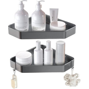 Doucheplank zonder boren doucherek aluminium driehoek douchemanden 2 stuks badkamerrek met 2 haken badkamerrek keukenrekken, lichtgrijs