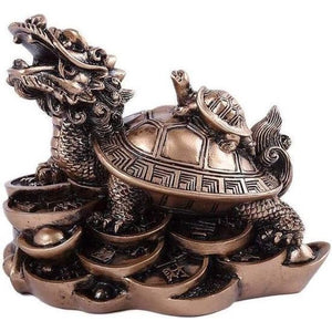 Drakenschildpad Feng Shui materiaal: hars. Afmetingen Drakenschildpad Feng Shui: 12 x 9 x 8 cm. Kleuren van Drakenschildpad Feng Shui: Goud. Aziatische decoratie – Artikel Feng Shui De Drakenschildpad is een van de belangrijkste wezens uit de Chinese mythologie. Dit dier combineert twee hemelse Chinese dieren: de schildpad en de draak. In de oudheid werd het retrouvait-symbool in de keizerlijke paleizen gebruikt om een ​​langer leven voor de keizer en vrede voor het land te symboliseren. Volgens de Feng Shui-traditie is de schildpad zelfs een symbool van een lang leven, en de draak een symbool van vastberadenheid en moed.