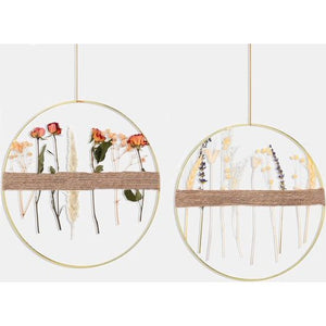 Droogbloemenkrans: Droogbloemendecoraties bevatten alleen natuurlijke gedroogde planten: pampasgras, rozen, tarwekruiden, vlas, gipskruid, lavendel en nog veel meer. Hoogwaardige decoratieve kransen: de bloemenkrans (diameter: 25 cm) is gemaakt van hoogwaardig materiaal en het oppervlak is gegalvaniseerd, het vervaagt niet gemakkelijk. Het jutetouw is sterk en duurzaam. 【CHIC DESIGN】: stijlvolle pampakransen ontmoeten een luxe esthetiek die elke kamer opfleurt, evenals delicate accessoires voor een moderne maar tijdloze uitstraling. Eenvoudig te monteren: de doe-het-zelf-set met gedroogde bloemenkrans bevat een metalen decoratieve krans, jutetouw en gedroogde bloemen. Kies jouw favoriete droogbloemen die je tussen de touwen steekt. Je kunt ook elke