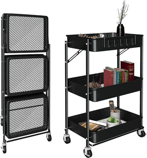 OPVOUWBARE HULPWAGEN: Ontworpen met 3 ademende opslagniveaus, 4 wielen en een opvouwbare structuur waardoor de wagen gemakkelijk kan worden vervoerd. De afmetingen zijn 45 x 23 x 72 cm en opgevouwen 95 x 7 cm. MEERVOUDIG GEBRUIK: Het moderne ontwerp past gemakkelijk in elk interieur en is een ideale organizer voor voedsel, gereedschap, boeken, planten, cosmetica, enz. Je kunt het in veel kamers van je huis gebruiken, zoals: Bijvoorbeeld in de keuken, badkamer, woonkamer, garage, slaapkamer en zelfs in de tuin. CAPACITEIT EN WEERSTAND: De wagen heeft 3 niveaus die een gewicht van 10 kg per niveau ondersteunen, waardoor hij resistent is en je allerlei dingen kunt opbergen, aangezien hij in totaal 30 kg kan dragen.