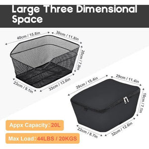 Fietsmand, schooltassenmand, universele fietsmand achter, 20 liter, grote capaciteit, bagagedrager, waterdichte fietsmand, metaal