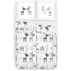 Flanellen beddengoed, 155 x 220 cm, winter - rendier beddengoed, 155 x 220 cm, wit kerstbeddengoed, 155 x 220 - 100% katoen Flanellen beddengoed, 155 x 220 cm, winter - rendier beddengoed, 155 x 220 cm, wit kerstbeddengoed, 155 x 220 - 100% katoen