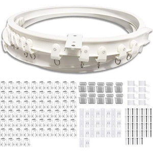 OVERAL GEBRUIKEN Onze klanten kopen deze rail meestal en installeren deze in badkamers, kantoren, hotels, ziekenhuizen, klinieken, campers en meer. Of het nu gaat om een ​​douche, plafond, erker of andere ramen, alles kan perfect op elkaar worden afgestemd Elke vorm: ongeacht welke positie of ruimte-indeling onze gordijnrails flexibel kunnen worden aangepast. Buig gewoon, maak je geen zorgen dat het breekt, het ziet er geweldig uit in elke omgeving met een verscheidenheid aan toepassingsscenario's Stil & Privacy: Door de perfecte afstemming van de demperrollen, haken en rail wordt het gehele gordijnsysteem zeer stabiel en stil tijdens het glijden. Ideaal voor het creëren van scheidingswanden en het behouden van een privéplek Metaal + PVC: op een innovatieve manier hebben we de metalen plaat in het PVC ingebed, waardoor de gordijnrail niet alleen flexibel is (buigt in elke hoek), maar ook duurzaam (houdt zware stoffen gordijnen vast). Na ruim 200.000 heftige tests kan het railsysteem nog steeds probleemloos gebruikt worden, wat erg praktisch is EENVOUDIG TE INSTALLEREN Welkom bij het kopen van onze gordijnrail wanneer uw elektrische boormachine, schroevendraaier en liniaal gereed zijn. Installeer uw eigen gordijnsysteem door onze stapsgewijze instructies te volgen, zonder dat u een professioneel bouwteam of professioneel gereedschap nodig heeft Pakket bevat eindkappen: 8 stuks Spoorwielen: 64 stuks Gordijnhaken: 68 stuks Anker- en schroevenset: 28 sets Montagebeugels: 26 stuks