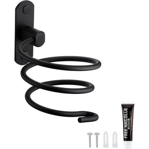 Föhnhouder, föhnhouder, föhnhouder, wandmontage, niet boren, zelfklevend, aluminium, met kabelhouder, zwart