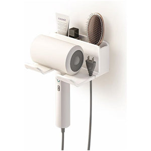 Föhnhouder zonder boren, föhnhouder voor aan de muur, zonder boren, föhnhouder met stekkerhouder en opbergvak, geschikt voor de meeste haardrogers, 16 x 6,5 x 12,6 cm