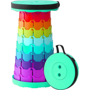 COMPACT & LIGHTWEIGHT: Our foldable stool weighs only about 2.2 pounds and is convenient to carry with the adjustable shoulder strap. Whether camping, hiking or travelling, it is always with you and takes up hardly any space. Flexibly adjustable height: the folding stool can be individually adjusted in a range of 7-45 cm. So you can adjust it according to your needs and find a comfortable seat height. EASY TO USE Thanks to the easy open and close mechanism, the stool can be folded up and folded in seconds. This saves you time and effort. SAFE AND STURDY Our folding stool is made of environmentally friendly plastic and offers a maximum load capacity of 200 kg. The round shape and locking mechanism ensure a secure and stable seat. MULTIPURPOSE Whether camping, as a children's stool, shower stool or for use in the office, kitchen, garden and much more, our foldable stool is suitable for different scenarios. The colourful rainbow colours also make it an eye-catcher.