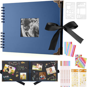 Fotoalbum 29,5 x 21 cm fotoalbum om zelf vorm te geven, zwart, fotoboek met 80 pagina's scrapbook, voor 160 foto's, incl. 6 metallic kleurmarkers, gastenboek voor verjaardag en bruiloft