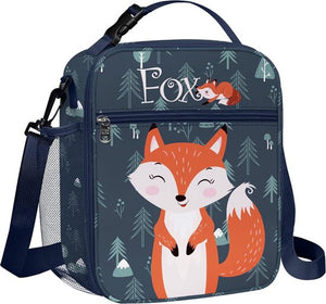 Fuchs geïsoleerde lunchtas voor kinderen, met flessenhouder, blauwe koeltas, klein, draagbaar, voor jongens en meisjes