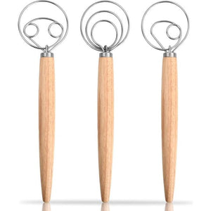 Veelzijdige bakaccessoireset: de 3 stuks Deense garde. Wij bieden een oogmixer, dubbele oogmixer en drieringmixer in drie verschillende uitvoeringen aan, om een veelzijdige oplossing voor je bakbehoeften te bieden. Met hoogwaardig roestvrij staal en een elegant design zijn deze gebruiksvoorwerpen perfect geschikt voor de bereiding van brood, deeg, cake en gebak. Ergonomisch houten handvat: de 13 inch brooddeegmixer is uitgerust met een comfortabele houten handgreep, die niet alleen goed in de hand ligt, maar ook een aangenaam gevoel biedt. De handgreep zorgt voor een optimale controle tijdens het mengen en geeft de set een rustiek tintje. Efficiënt design: de brooddeegmixer is speciaal ontwikkeld voor een efficiënte menging. De nauwkeurige constructie en de hoogwaardige materialen garanderen een gelijkmatige verdeling van de ingrediënten om heerlijke en gelijkmatig gebakken resultaten te bereiken.