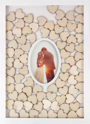Gastenboek bestaande uit een fotolijst met 72 houten harten om te beschrijven