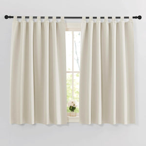gordijnen keuken modern lusgordijn set van 2 H 145 x B 140 cm raamgordijnen met lussen gordijn ondoorzichtig keukengordijnen black-out Curtain, lichtbeige