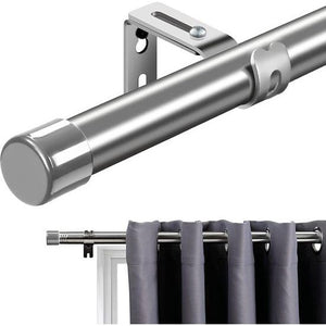 Gordijnstangen met kapknoppen, 76-157 cm, zilveren gordijnroede (zilveren eindkappen) met houders, beslagset, raamstangen voor woonkamer en buiten
