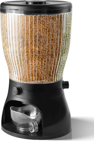 【Opslag met grote capaciteit】 Graanopslag met grote capaciteit van 5 liter, inclusief in totaal 3 verdelers, één grote met een capaciteit van 2,5 liter en twee kleine met een capaciteit van 1,25 liter. Er kunnen drie verschillende graansoorten tegelijkertijd worden opgeslagen. Graan wordt centraal opgeslagen om rommel op het bureau te voorkomen en opslagruimte te besparen. 【Bespaar keukenruimte】De ontbijtgranencontainer is speciaal ontworpen voor het bureau en beschikt over een gemakkelijk te openen deksel en een stevige basissteun. Het is een kleine hulp bij het opbergen in de keuken. Het kan ook in een kast worden opgeborgen om bureauruimte te besparen. 【Behoud de versheid】 Materiaal van voedingskwaliteit, veilig in contact met voedsel. De dispenser is luchtdicht om de versheid van droge voeding te behouden. Bewaar droog voedsel bij elkaar, zodat u zich geen zorgen hoeft te maken dat het voedsel drassig wordt. Dankzij het transparante vatontwerp kunt u op elk moment het type en de inhoud van het voedsel zien. 【Eenvoudig te gebruiken rijstdispenser】 360 graden rotatieontwerp en knopschakelaar, je hoeft alleen maar het gewenste graan naar de opening te draaien en op de knop te drukken om het graan af te geven. Het ontwerp van de roterende voedseldispenser helpt bij het controleren van de porties en voorkomt voedselverspilling. Vermijd tegelijkertijd het strooien van voedsel en houd uw bureau opgeruimd. 【Multifunctionele droogvoercontainer】De voerbak is geschikt voor droogvoer met kleine deeltjes, zoals rijst, mungbonen, rode bonen, erwten, gerst, maïs, noten enz. De bovenkant van de container is uitgerust met een insectenbeschermingsbox, die gevuld is met steranijs, knoflook, theebladeren etc. kan geplaatst worden om vocht en insecten effectief te voorkomen.