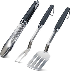 Grillbestekset, driedelig, 44 cm, grillset met grilltang, grillspatel en vleesvork van roestvrij staal, grillset, grillaccessoires, roestvrij